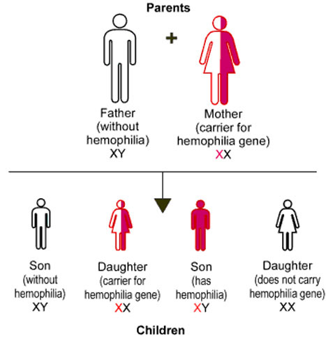 Women who have the Hemophilia gene are called carriers. They sometimes show signs of Hemophilia, and they can pass it on to their children. For each child, there is a 50% chance that a son will have Hemophilia and a 50% chance that a daughter will carry the gene.